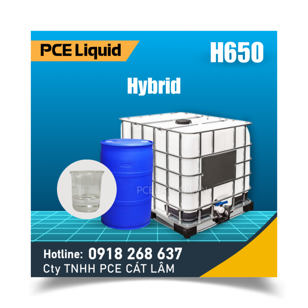 HYB-H650 là dòng phụ gia siêu dẻo kết hợp polycarboxylate ether (PCE) cải tiến, nguyên liệu để sản xuất phụ gia bê tông, đặc biệt là phụ gia cho bê tông tươi. HYB-H650 là dòng Hybrid cho khả năng giảm nước và tính duy trì, tính công tác lâu, giúp giữ độ sụt lâu trong thời gian dài mà không bị tách nước hoặc phân tầng vật liệu. Thích hợp cho phụ gia bê tông cần có tính duy trì tính công tác.