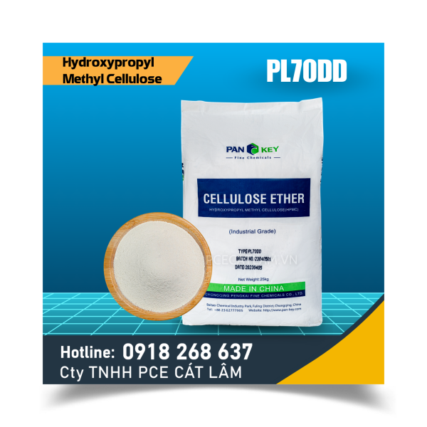 HPMC PL70DD (Hydroxypropyl Methyl Cellulose PL70DD) là một loại cellulose methyl hóa và hydroxypropyl hóa. Nó là một chất bột mịn màu trắng và không mùi.